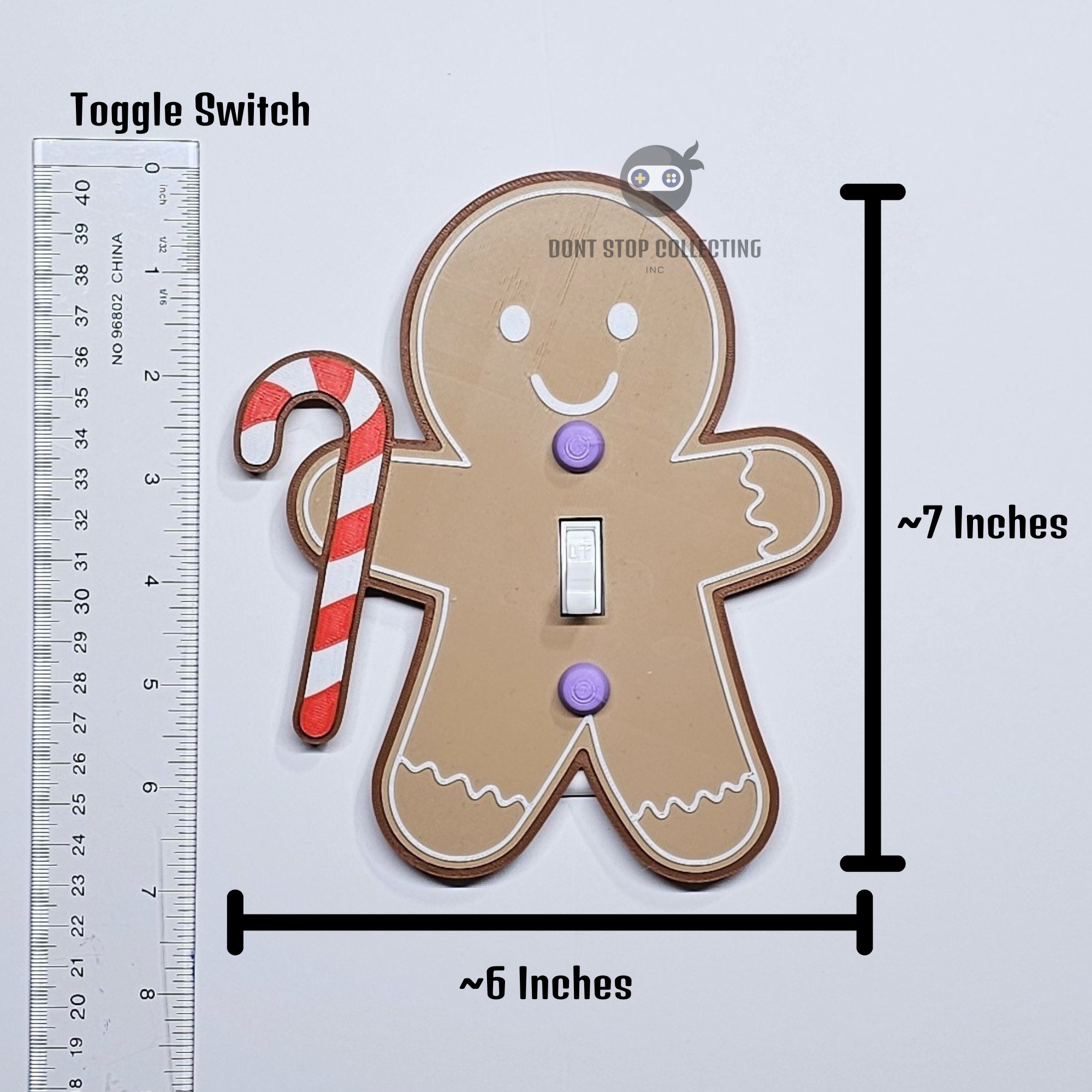 The statue is 3D printed in biodegradable PLA plastic which is then glued onto a standard light switch cover.